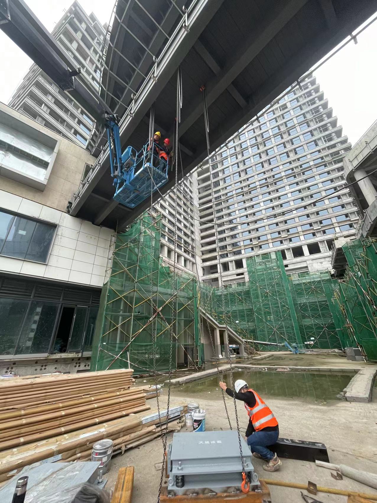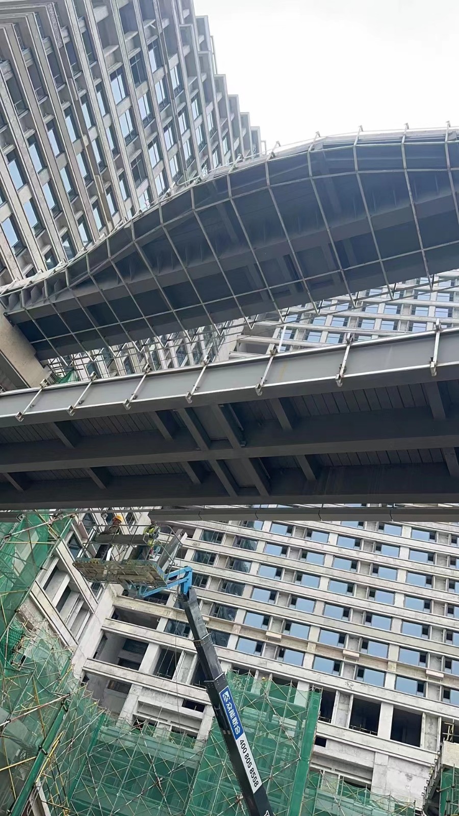 工程概況:金茂·岳茂苑4#地塊綜合樓連廊項(xiàng)目有兩段橋體結(jié)構(gòu)采用簡(jiǎn)支連廊,跨度均為26m左右。